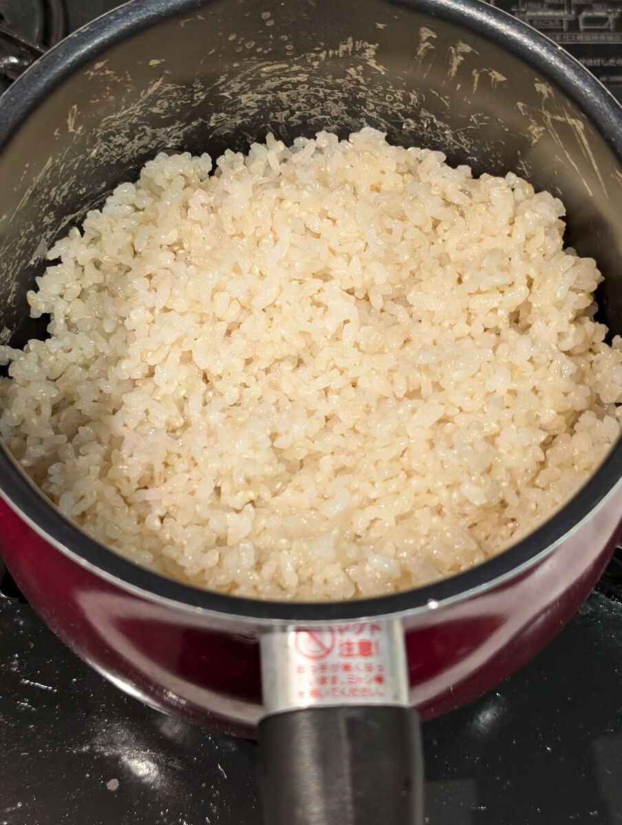 ちなみに、夫はトレーニングしていて糖質を摂りたがるので白米を、私はダイエットと健康のために玄米を食べたいので、炊飯器で白米を炊いて、ロウカット玄米は鍋で炊いてみた。