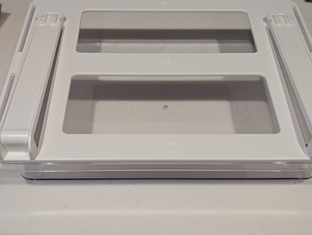 冷蔵庫の棚下用引き出し。あまり物が入らないし、滑り止めが弱くて引き出す時に動いてしまうのと、かえって収納力が落ちるような気がして手放し。